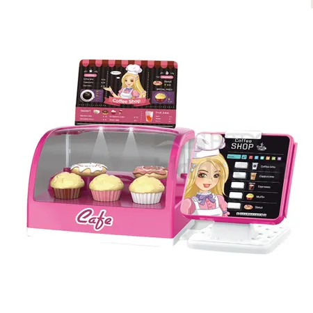 Simulation Coffee Shop Kids Toy Dessert Food and Order Table with Light