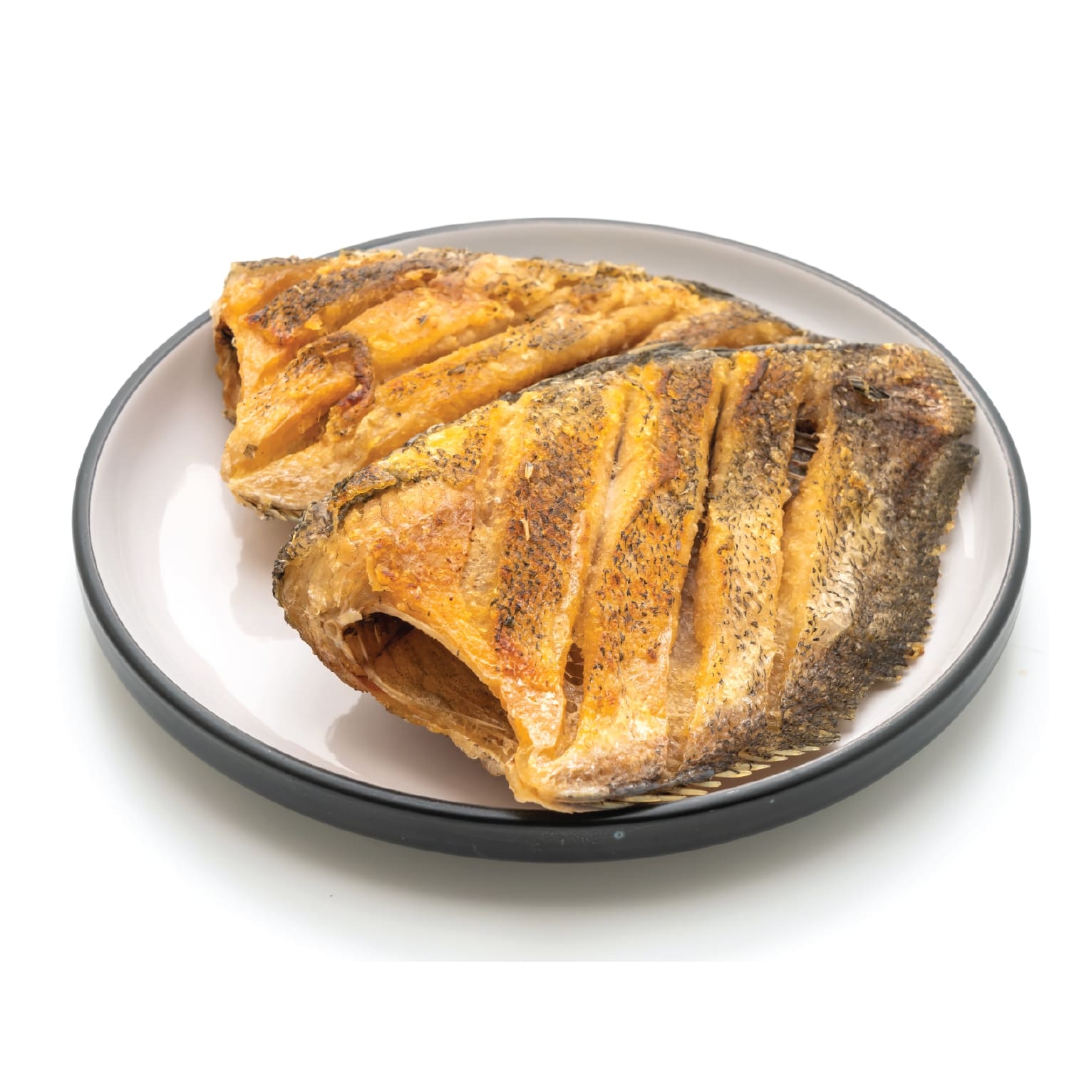 A local Thai delicacy. A single Gourami fish is salted, dried, fried and vacuum packed with a beautiful paper packaging. The white meat has a unique taste and chewy texture. It is ready to eat. Just open the packaging and enjoy.