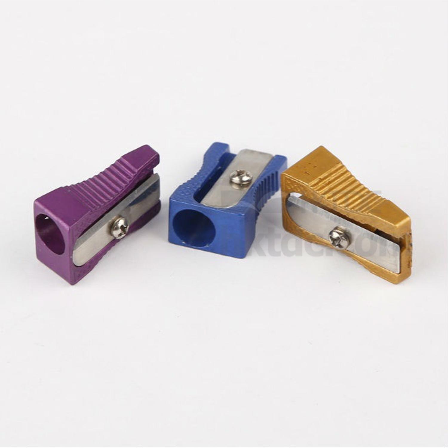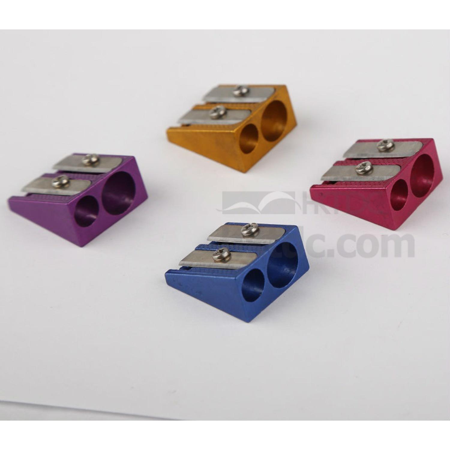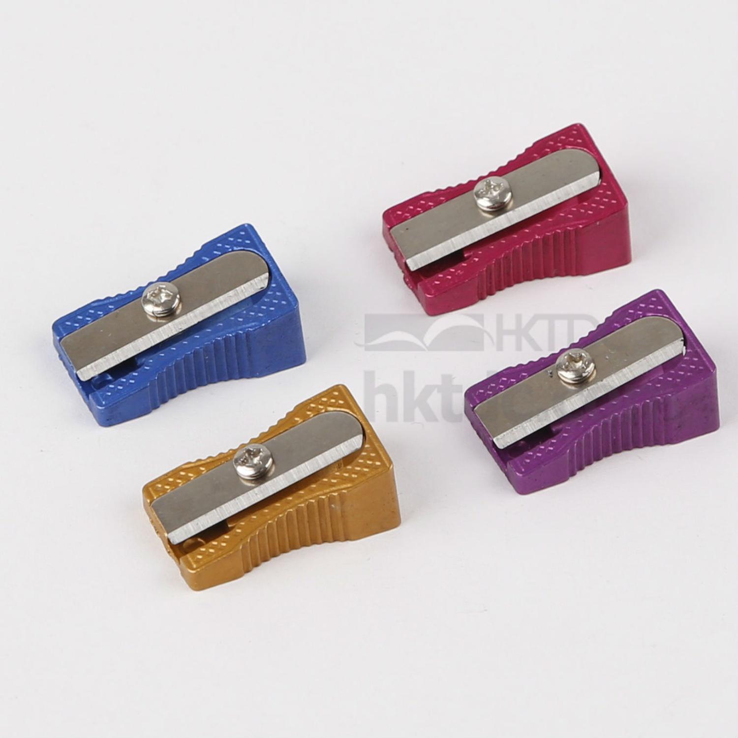 Single-hole cant aluminum alloy pencil sharpener, according to foreign authorities to release, manual sharpener relative to other drive pencil sharpener, manual sharpener is more suitable for primary school students the development of intelligence and ability to work, so the factory is still in the development of manual sharpener, all sorts of modelling of aluminum alloy material and plastic material development