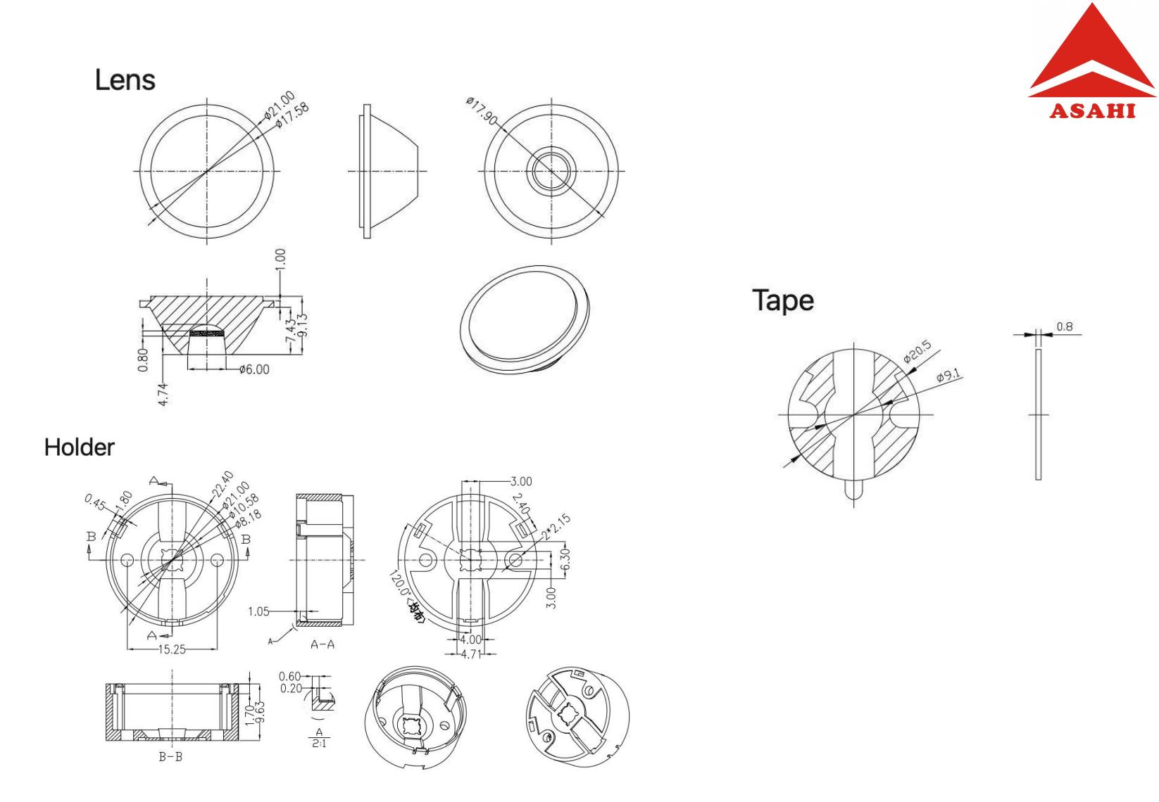 Single Lens 22.4mm with Narrow Height 9.63mm + Tape 40 degrees AJS22D9H40G-TAPE