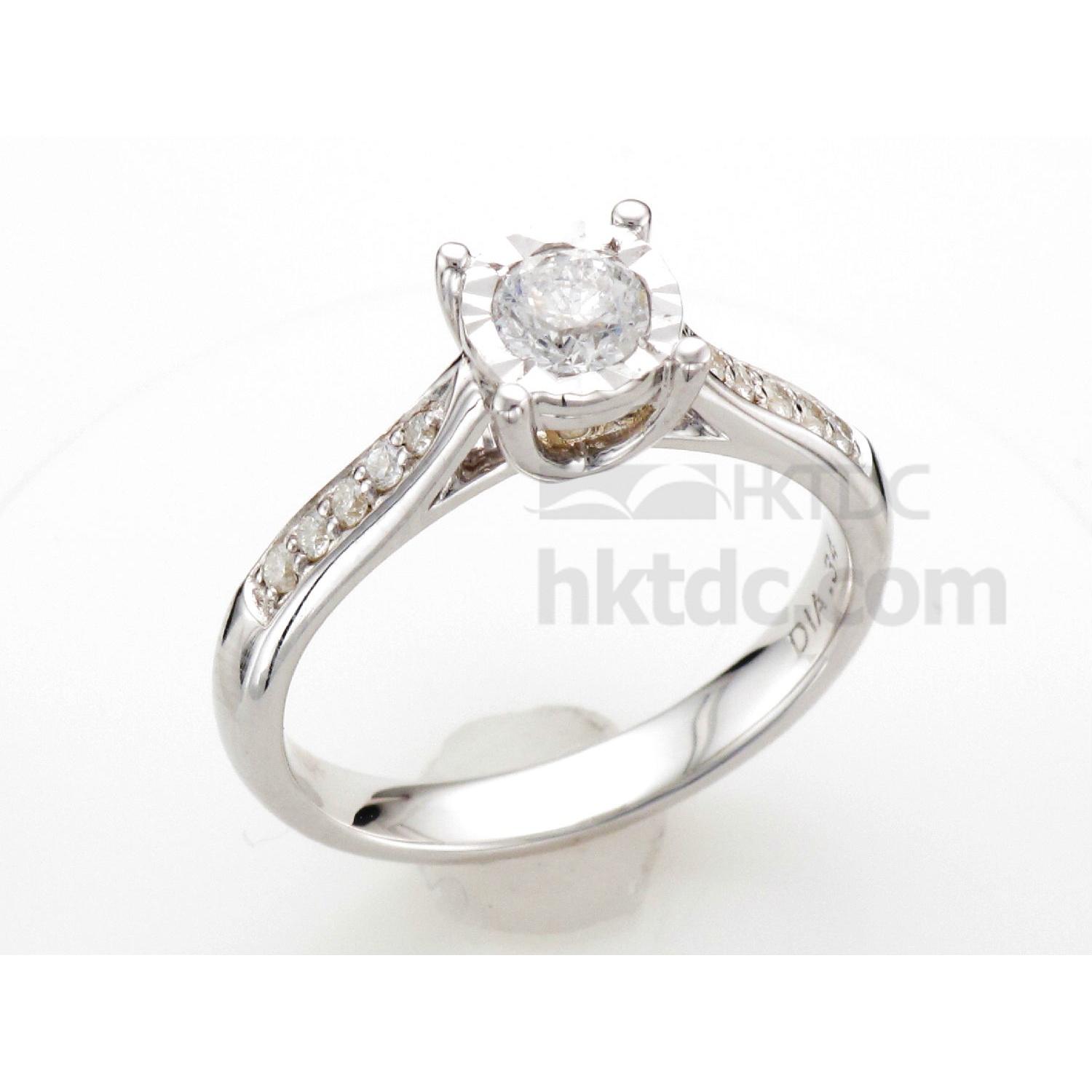 Single Stone Diamond Illusion Ring with diamond set shoulders