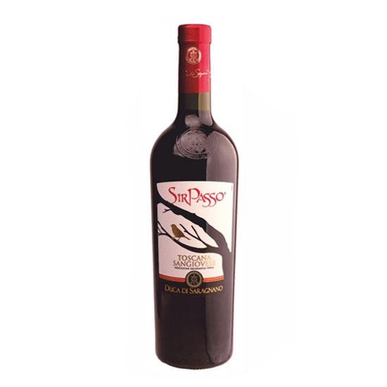 The Italian red is made from Sangiovese grown by Duca di Saragnano. You can taste savory flavors of dark cherries and black stone fruit on your palate. It is a perfect match for burgers and beef.