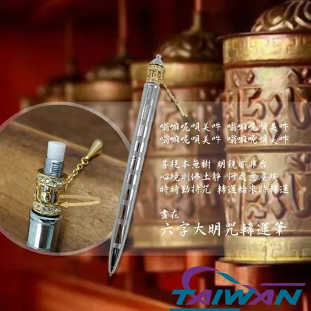 copper barrel, brass parts, blessing pendant with crystal element, ball pen,