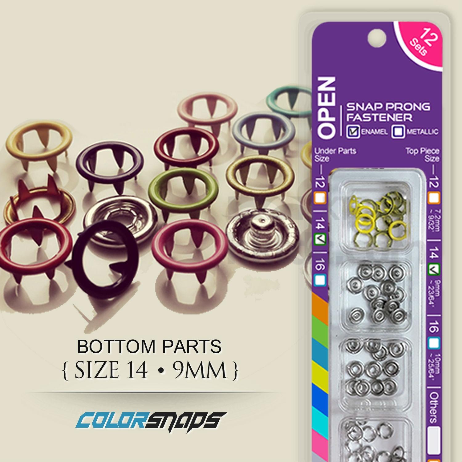 This open ring popper pack contains 12 complete sets in size 14. All parts are made of quality brass, which boast beautiful shade with enamel-coated ring prong and lasting shine with silver-plated bottom components. They allow quick and easy fastening, making them suitable for a wide variety of garment-making projects, especially baby and doll clothing.