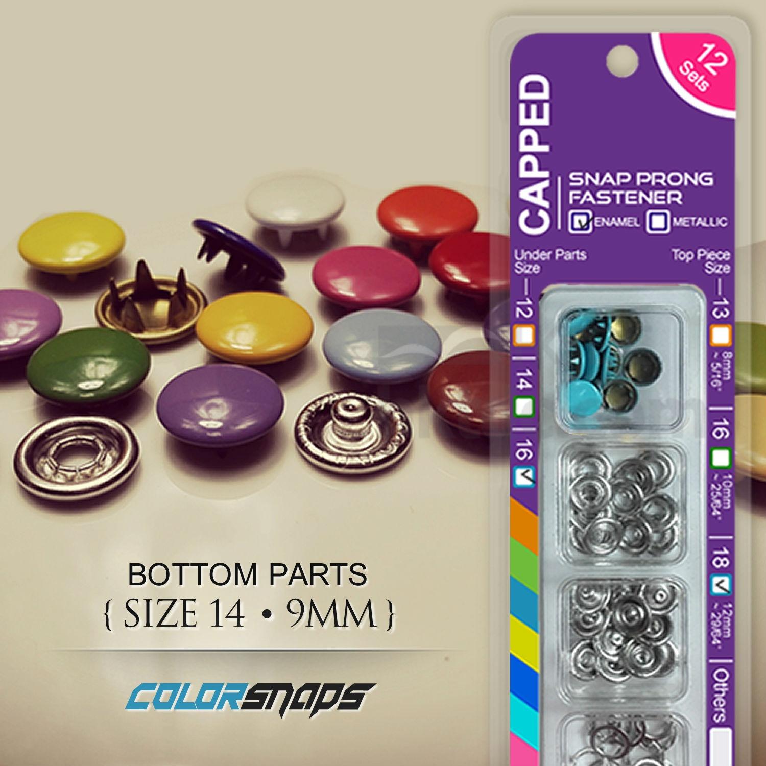 • 12-set size 16 5-prong capped snap fasteners pack.