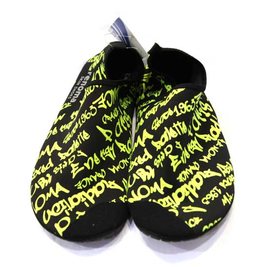 This is a pair of skin shoes with a low-top design. The shocking yellow graffiti patterns add a stylish finish to the skin shoe. Made of quality material, the skin shoes are lightweight and comfortable to wear.