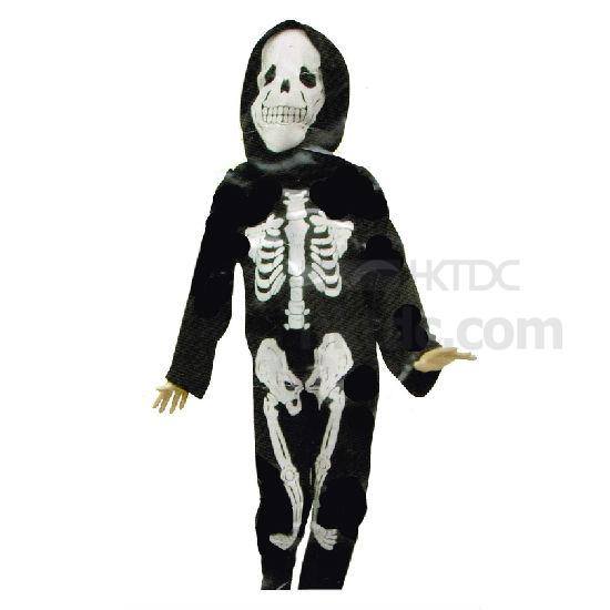 This jumpsuit is made of polyester jersey and is printed with a white skeleton. It has a skull printed hoodie for covering the head and offers a warm and comfortable fit. The jumpsuit is designed for kids aged 7-10 and is excellent for dressing up as a skeleton to parties, carnivals and more.