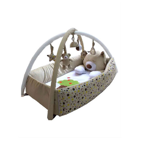 Featured is an excellent playgym that is professionally designed to stimulate babies' interaction and development. It comes with two arches to support hanging toys including a rattle, a squeaker, ears, a teether rolling ball and a mirror. This flexible gym can also be opened flat to become a large floor mat for babies to play.