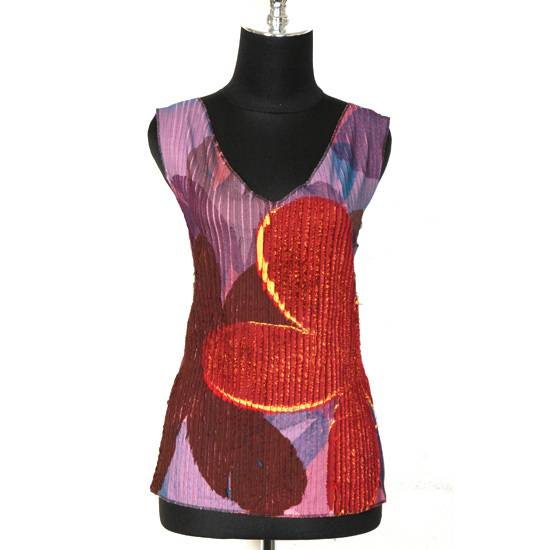 This is a ladies casual wear sleeveless blouse that is colourful with a vibrant pattern of flowers. Lightweight and well made, it is both casual and sophisticated at the same time. Comfortable to wear, it is suitable for almost any casual occasion.