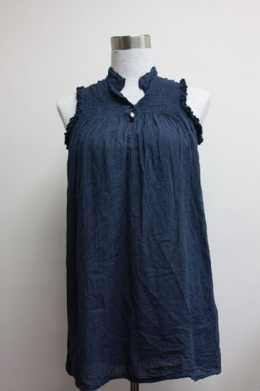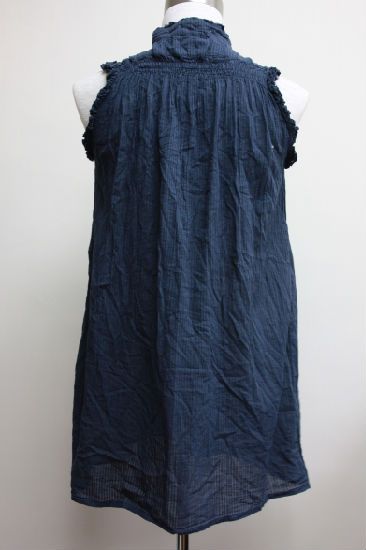 Featured is a stunning sleeveless dress in an elegant flowing design. This classy dress bestows a point stand-up collar with a split V-cut neckline for a fashionable classy look. Adorned with delicate ruffled details in loose design with fine craftsmanship, this cotton blouse is a great choice in hot summer with superb comfort guaranteed.