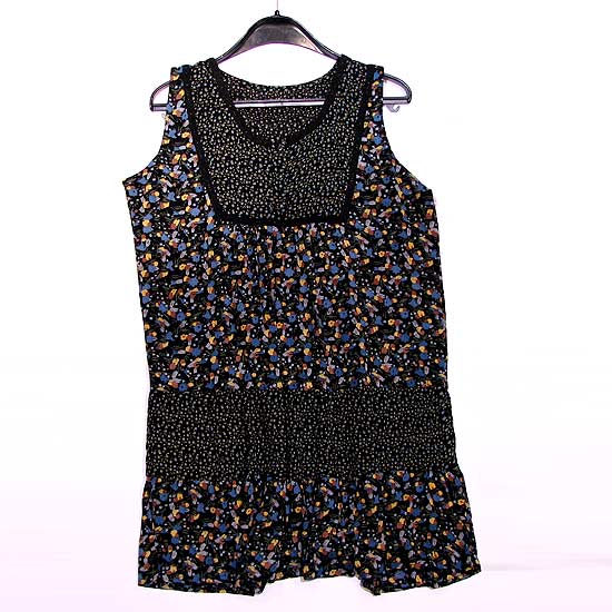 • This rayon crape dress is black in colour and is printed with elegant floral patterns in blue.