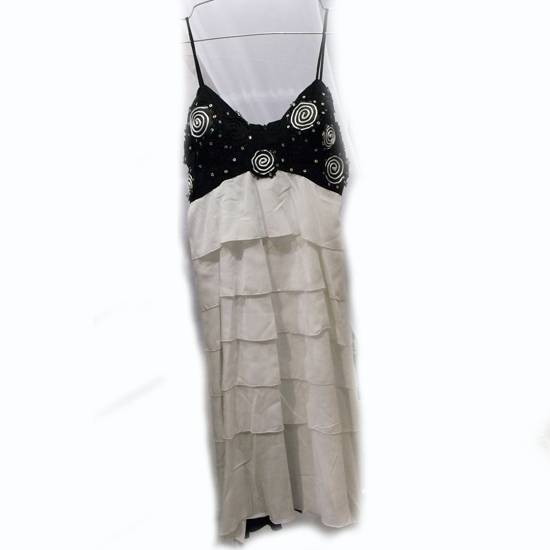 The ladies' sleeveless tiered dress features a deep v-neck with a built-in bra to enhance your beautiful curvatures. The neckline is decorated with shiny sequins and coil-shaped decoration for a modern edge. The straight-cut skirt gives out a babydoll styling with elegance.