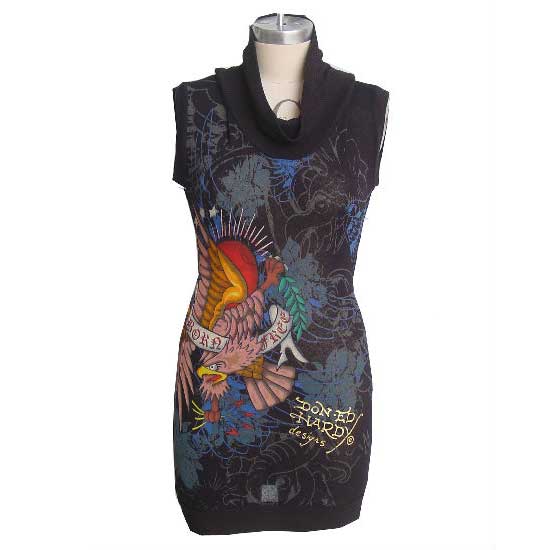 This sleeveless tunic comes in a cool and stylish design. With awesome Ed Hardy graphics, the tunic gives an edgy style instantly. This tunic is a nice choice to complete women’s casual-wear wardrobe.