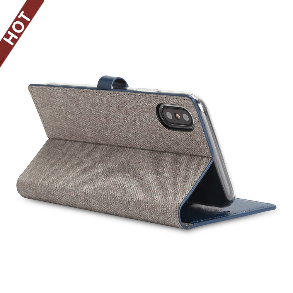 Ultra slim PU+fabric standing wallet case with magnetic flap