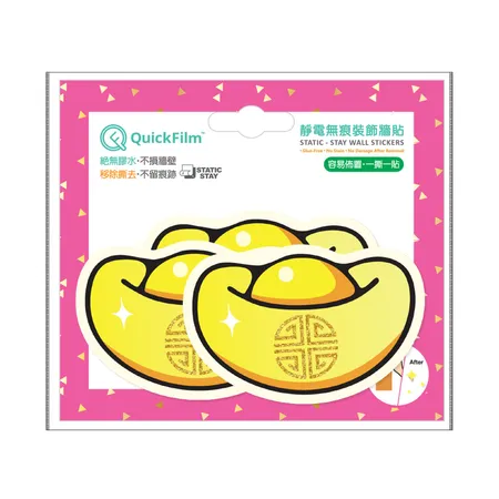 QuickFilm™ Static-Stay Collection does not contain glue, can be moved easily, and leaves no trace behind. It can be adhered to any smooth surface such as walls (including painted walls), wood, fridge, glass, etc. With our static-stay wall stickers, you can decorate your interior with festive blessings with just a tear-and-paste motion. Instantly renew the look of your interior, bringing constant freshness to your environment.