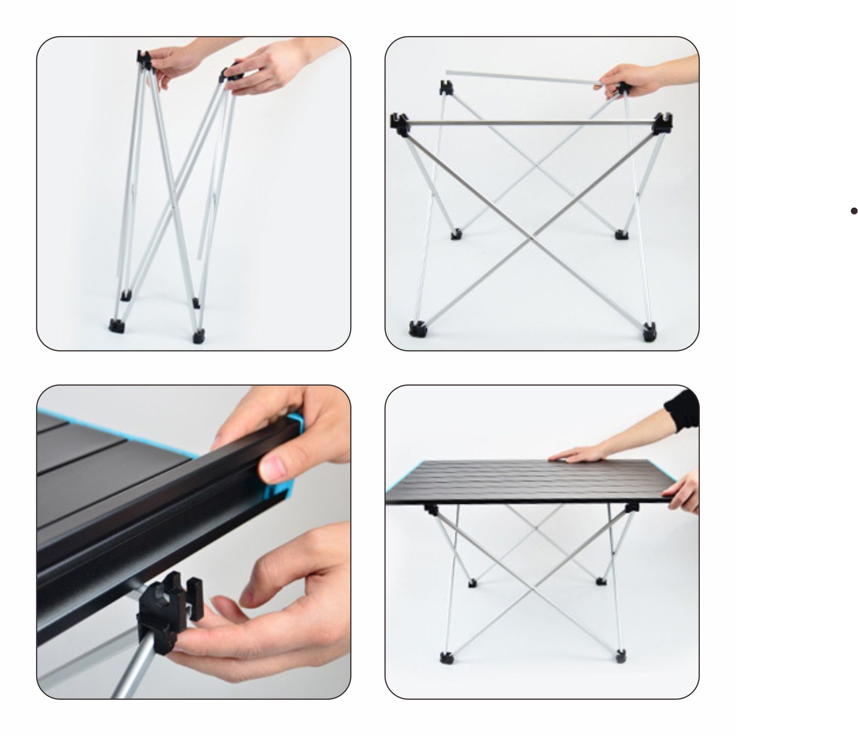 No Tools, Required, Easy to Setup : No tools needed! The aluminum base frame is designed to pop up and fold with ease. Its unique hinge design enables easy and robust connection to the table top. Just pop it open and attach the table top and you are ready to go! You can even assemble this using only one hand! It is so easy that a kid can do it!