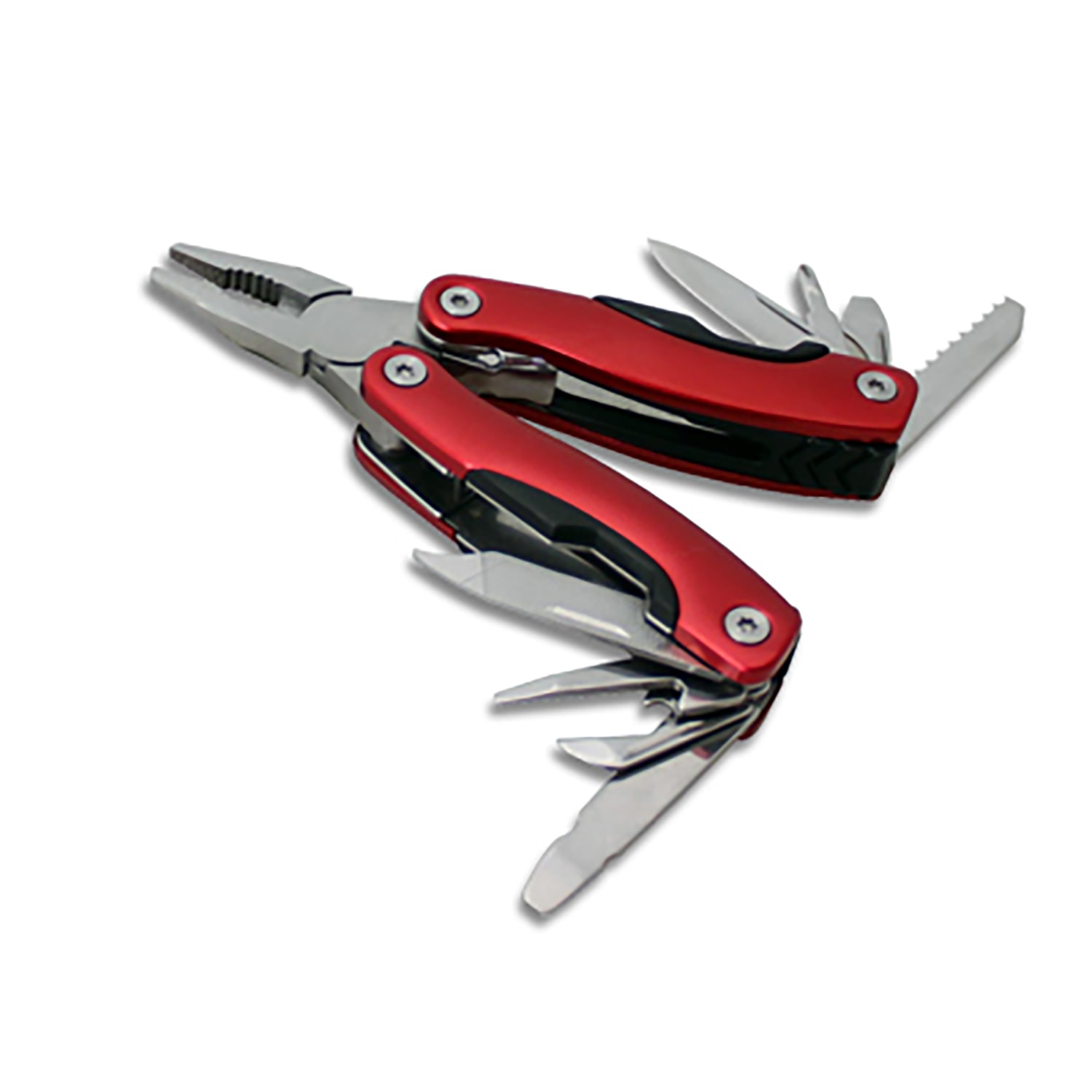 Small aluminum handle multi-tool including the following features: