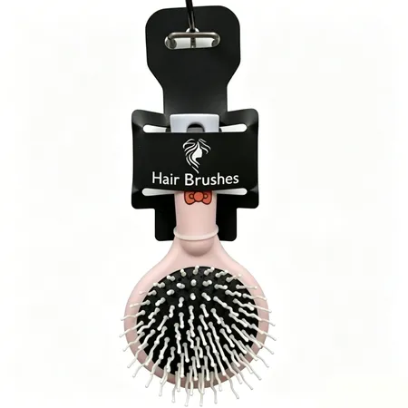 Small plastic kids hair brush with mirror,wave shape hair nylon pins,TPR cushion