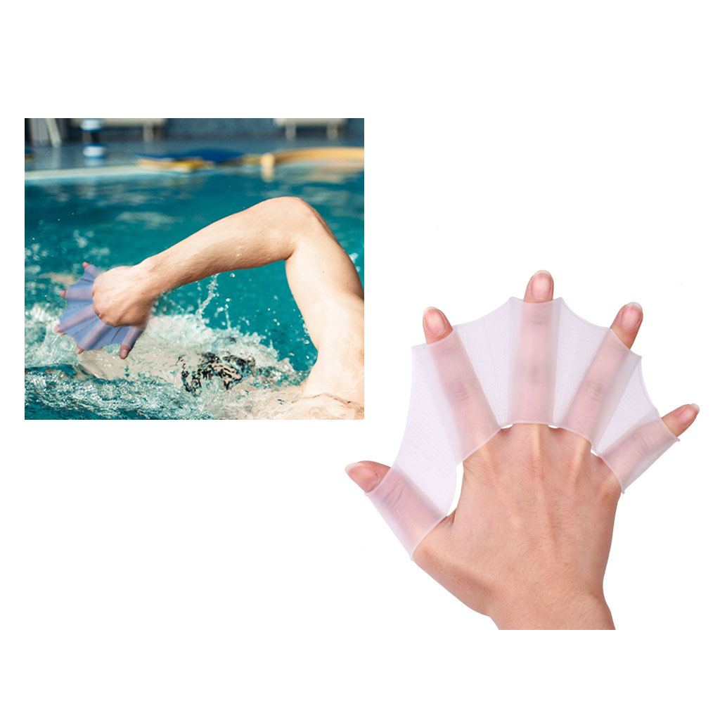 The swimming gloves are made of silicone, soft and elastic, comfortable touch, lightweight and portable, and reusable. The webbed finger's design of the palm can increase the thrust in the water, which is very suitable for waterproof training and adjusting muscle force.