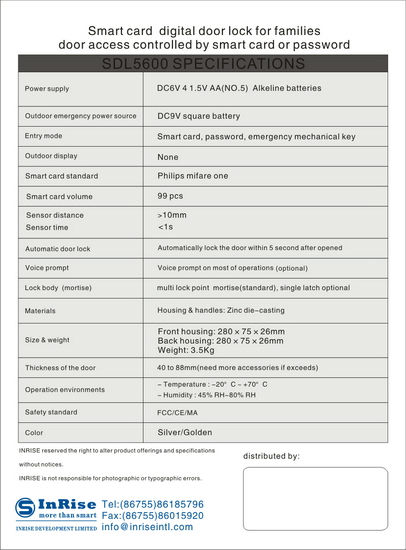 • Door open-ways: fingerprint, password verification, mechanical key, fingerprint scratch.