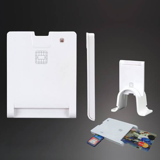 This is a smart card reader for connecting computers. It has two ports for reading SD memory cards and smart cards. With simple yet modern design, this card reader is suitable for both homes and offices.