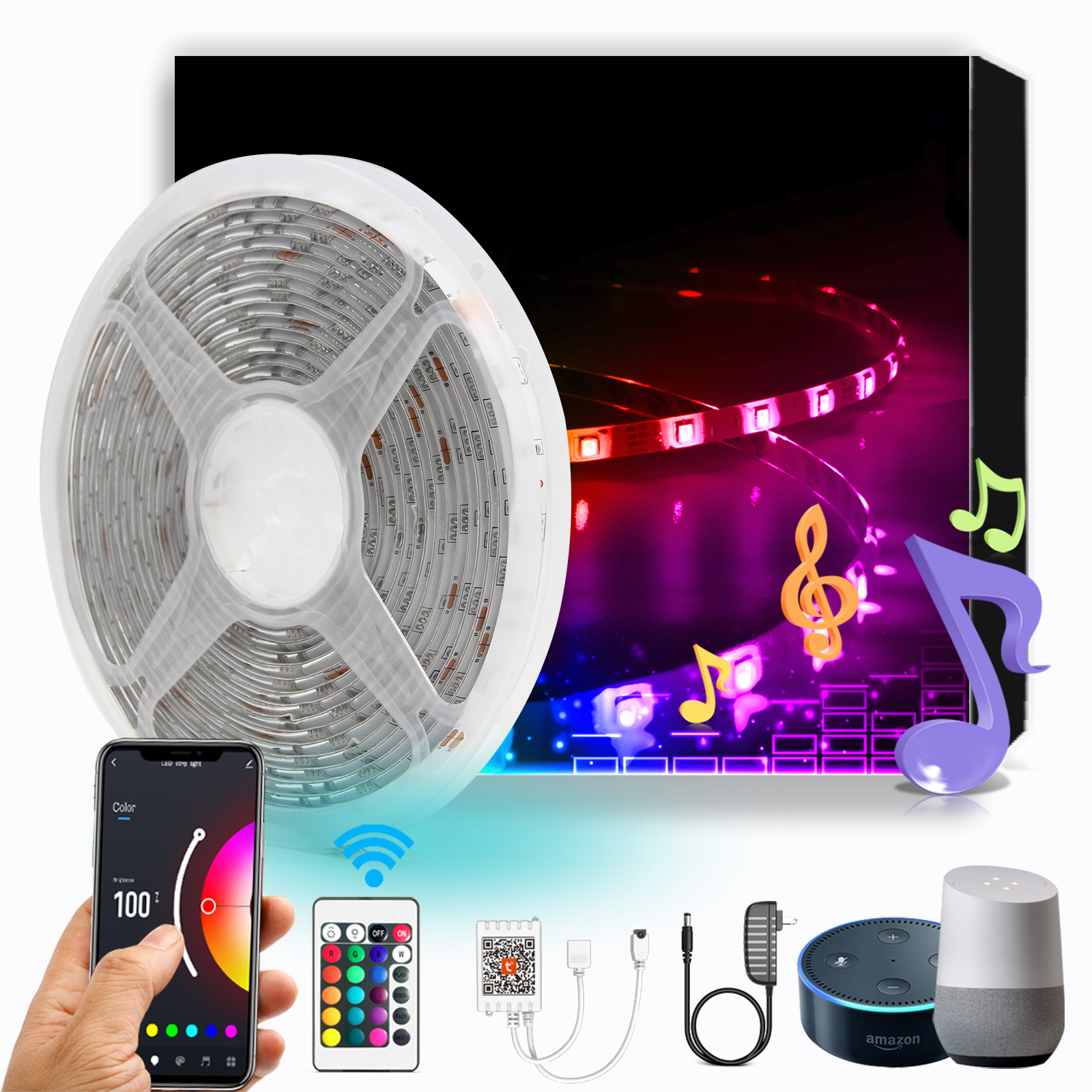 Led lights sync to music : Our wifi led strip lights can change color and sync with music ; It have multi-music mode, which will change to follow the rhythm or the melody; This music light strip can even respond to your voice which make the light “dance” to the beat