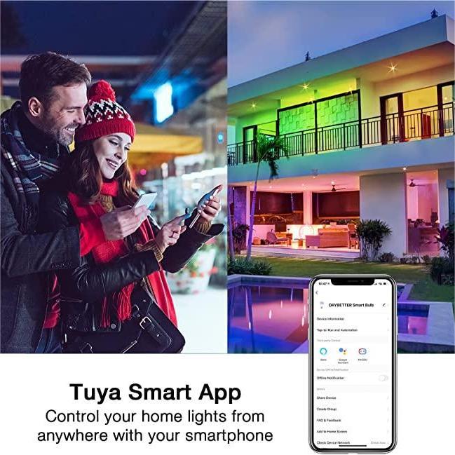 DAYBETTER Smart WiFi Led Lights , Tuya App Controlled Led Strip Lights, Work with Alexa and Google Assistant, Timer Schedule Led Lights Strip, Color Changing Led Lights for Bedroom Party Kitchen.