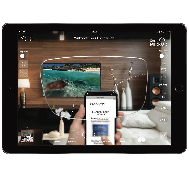 The Augmented reality module allows you to virtually show your patients how they will see with a polarized, aspheric, photochromic and different progressive lenses. Many studies show that consumers are most likely to buy better lenses, and are prepared to do so at a 30% higher price point.