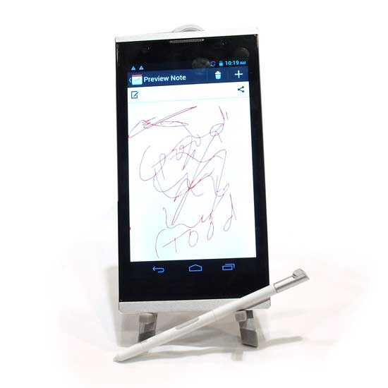 This smartphone with silvery toned bands at two ends features a large touch screen for maximum visual comfort. It is fitted with a nimble touch pen for easy drawing and writing. This functional smartphone is great for daily use.