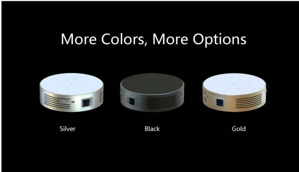 The pictured smart projector comes in a compact round shape and offers excellent portability. It is equipped with a Micro-USB port and can be recharged using the chargers of Android smartphones for added convenience. This smart projector delivers outstanding image quality and is suitable for work and entertainment use.
