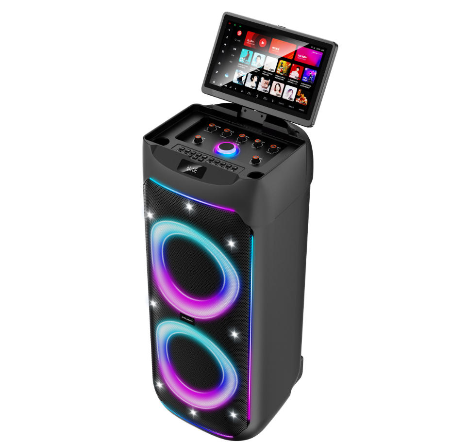All-in-One Entertainment System: This karaoke portable systems is perfect for home parties, family gatherings, or solo singing sessions, this portable karaoke machine combines screen, speaker, and smart tech in one sleek unit. Our karaoke machines are with four wheels at the bottom so that it can be moved everywhere.