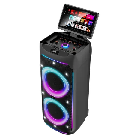 This professional karaoke machine is with 10" HD Touch Screen. Enjoy immersive karaoke sessions that lets you watch YouTube videos and sing along — no need for external devices or setups.