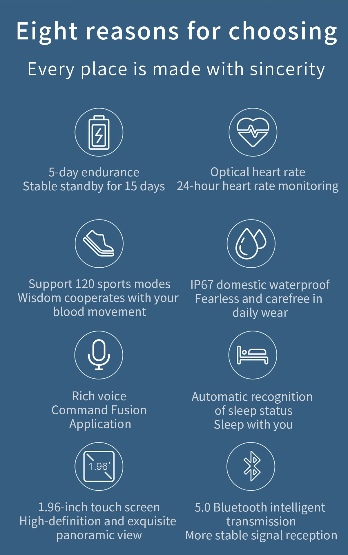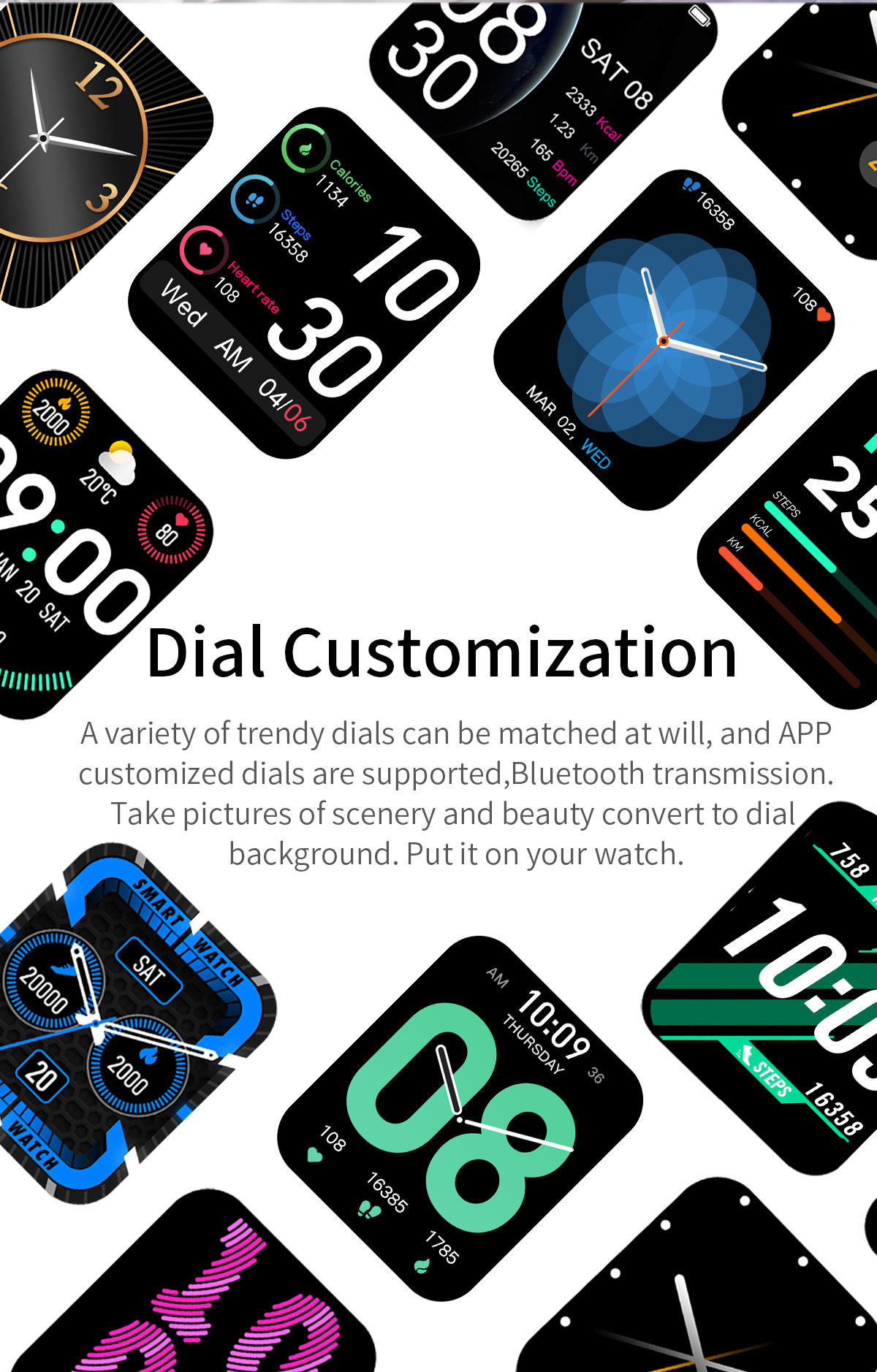 | Basic Functions | Bluetooth calling,Heart rate,Blood Pressure,Blood oxygen,AI Voice ,120+Sport modes,ETC. |