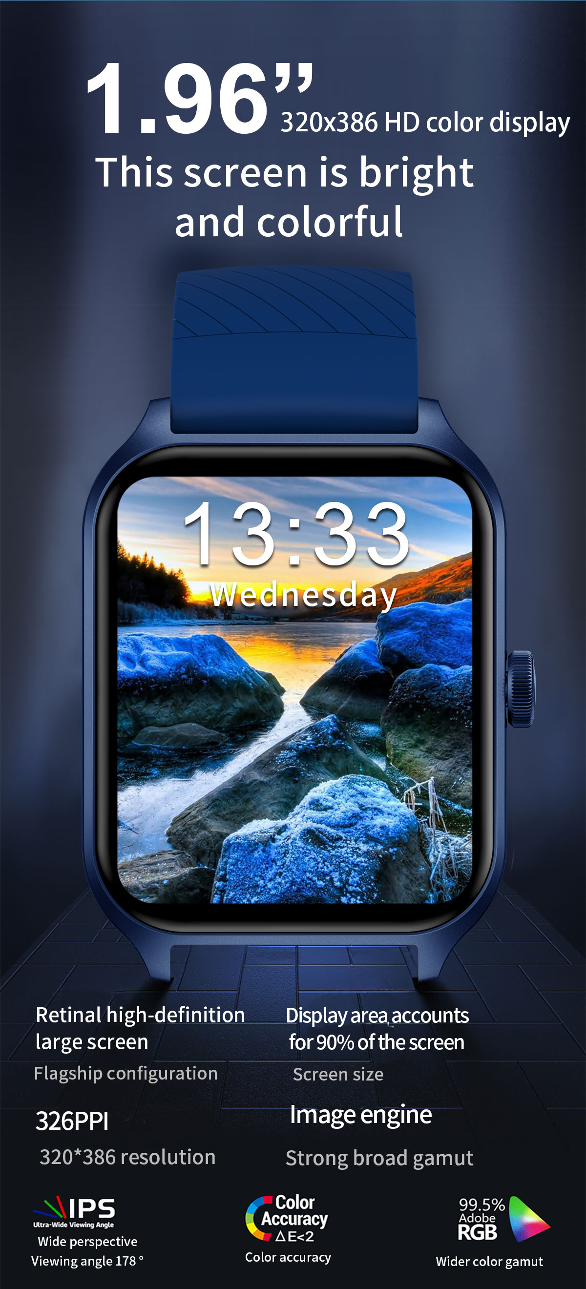 | Display Screen | 1.96 inches TFT Color, Full touch |
