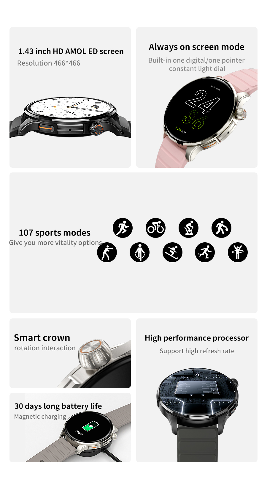 | Display Screen | 1.43 inches AMOLED,Full touch |