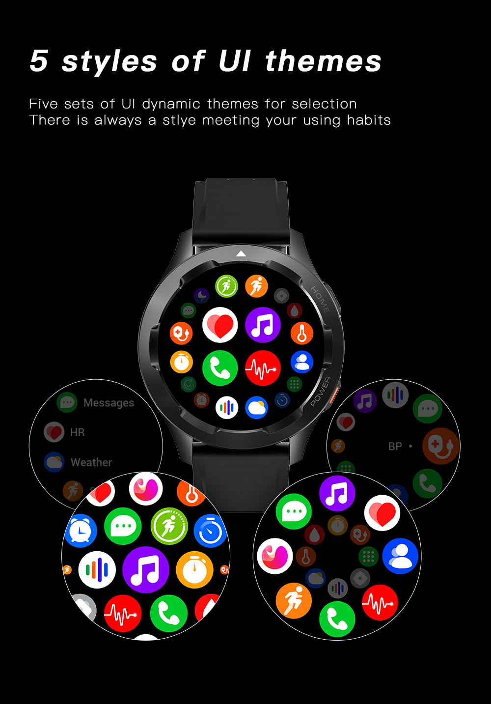 | Basic Functions | Bluetooth calling,Heart rate,Blood Pressure,Blood oxygen,AI Voice ,120+Sport modes,ETC. |