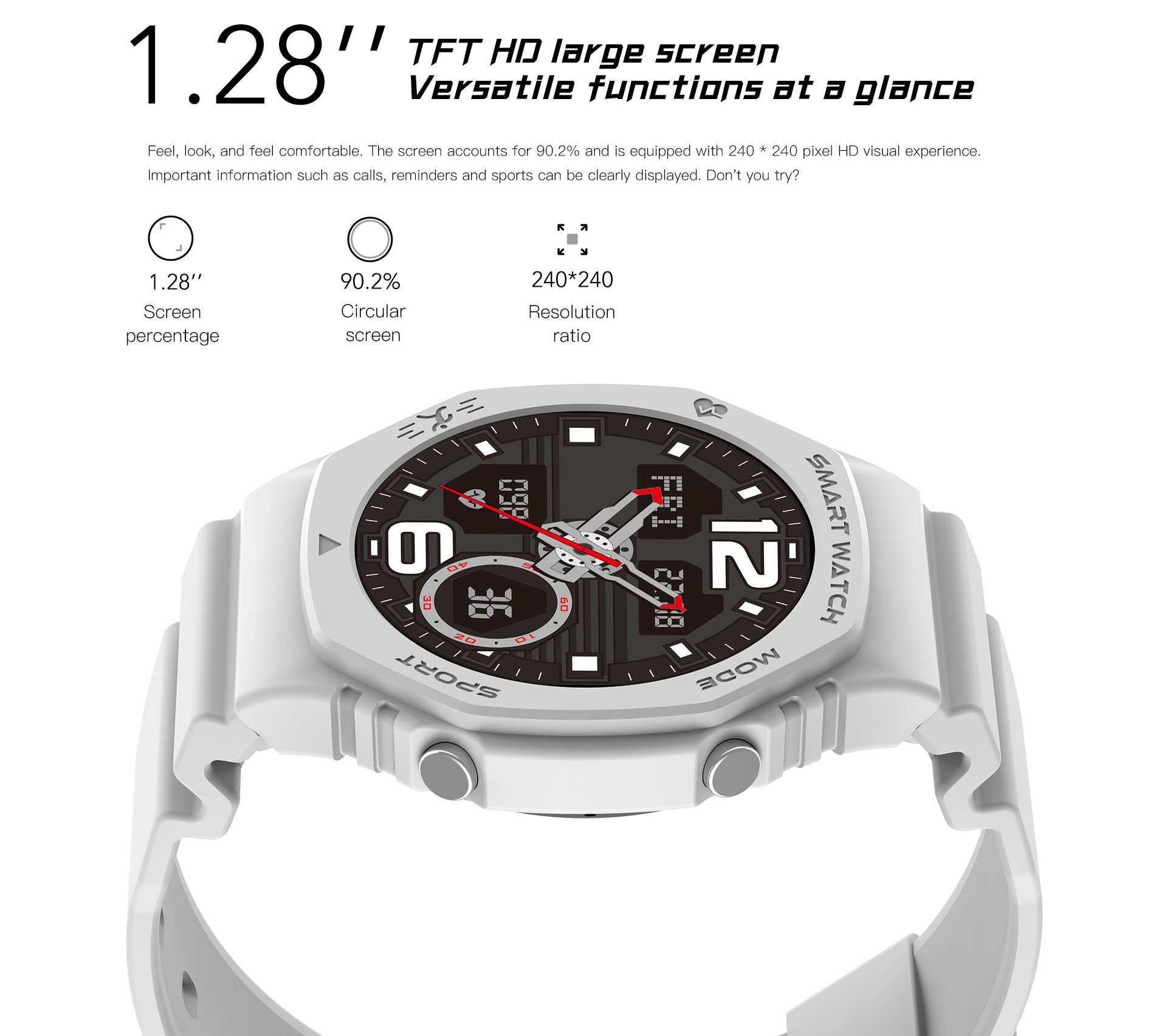 | Display Screen | 1.28 inches TFT Color, Full touch |