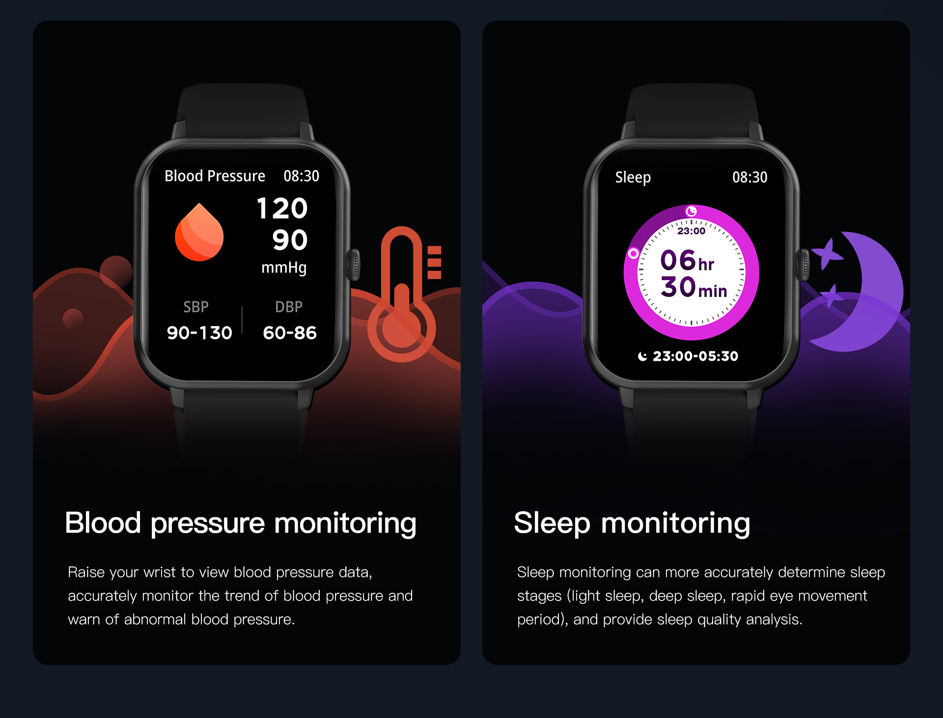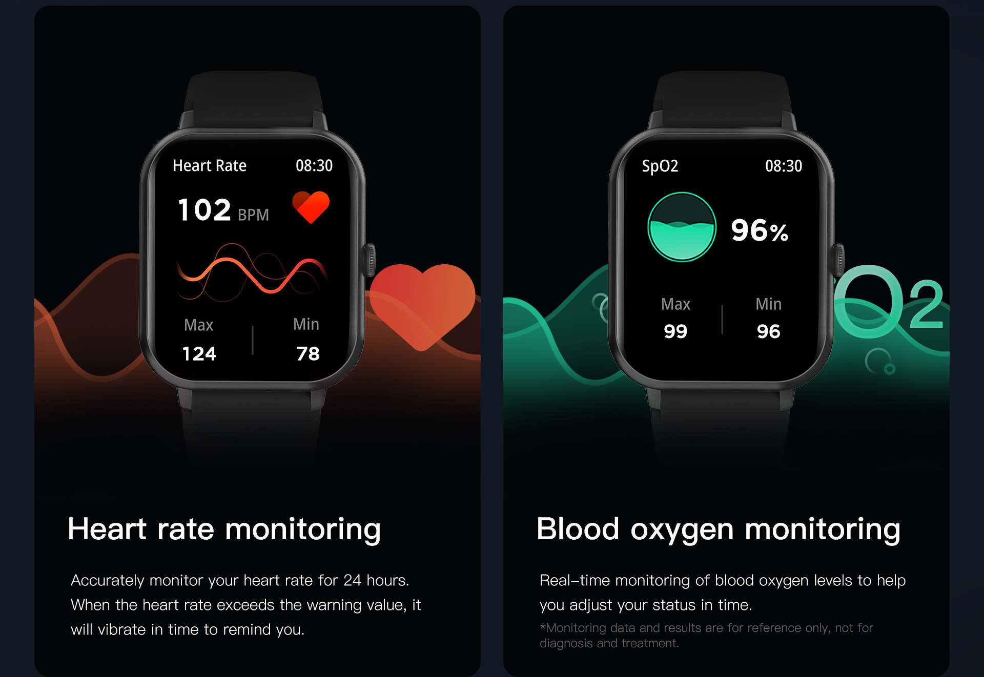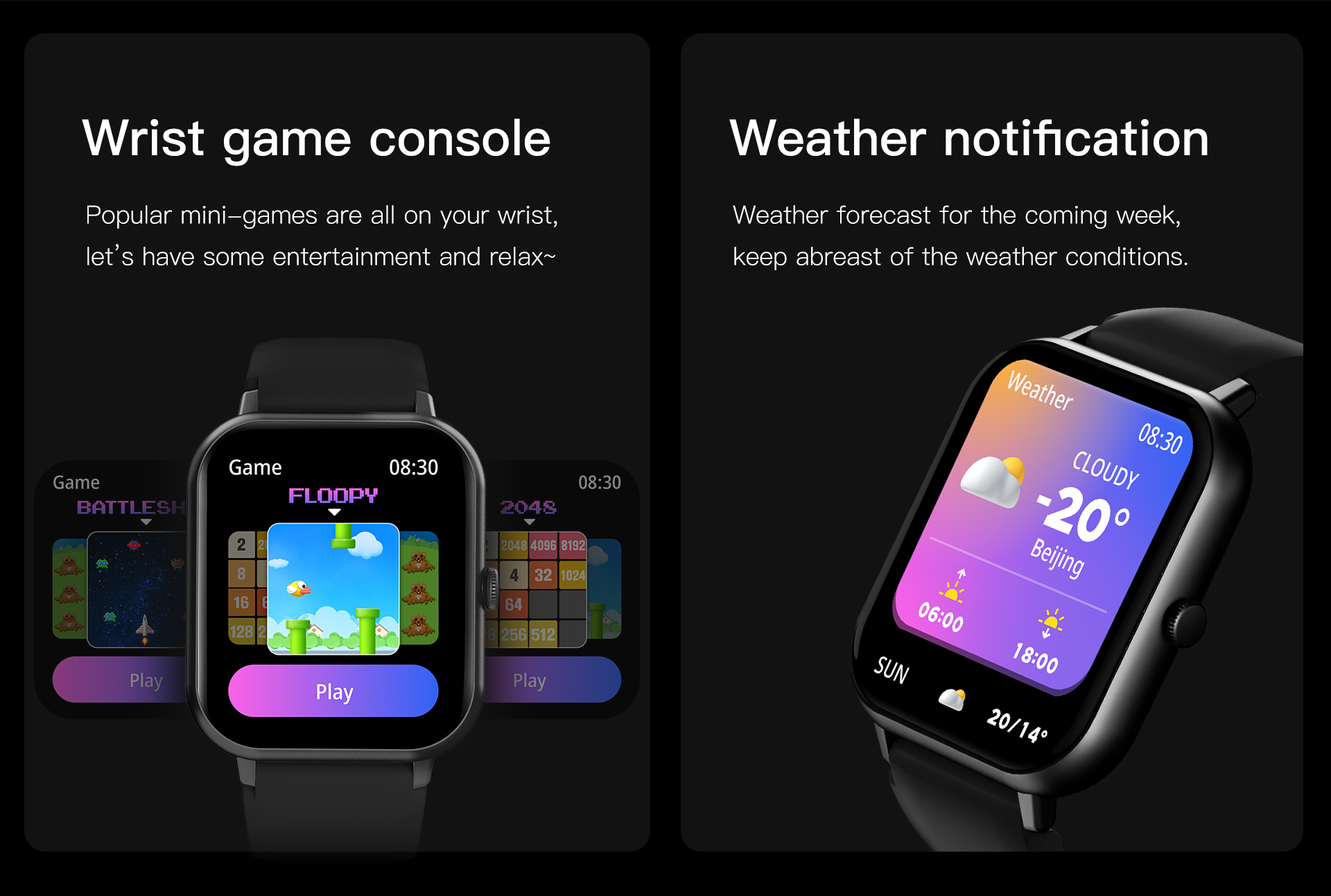 | Basic Functions | Bluetooth calling,Heart rate,Blood Pressure,Blood oxygen,AI Voice ,100+Sport modes,ETC. |