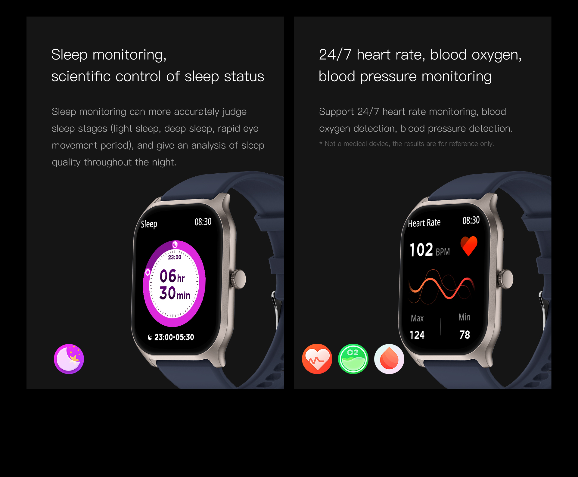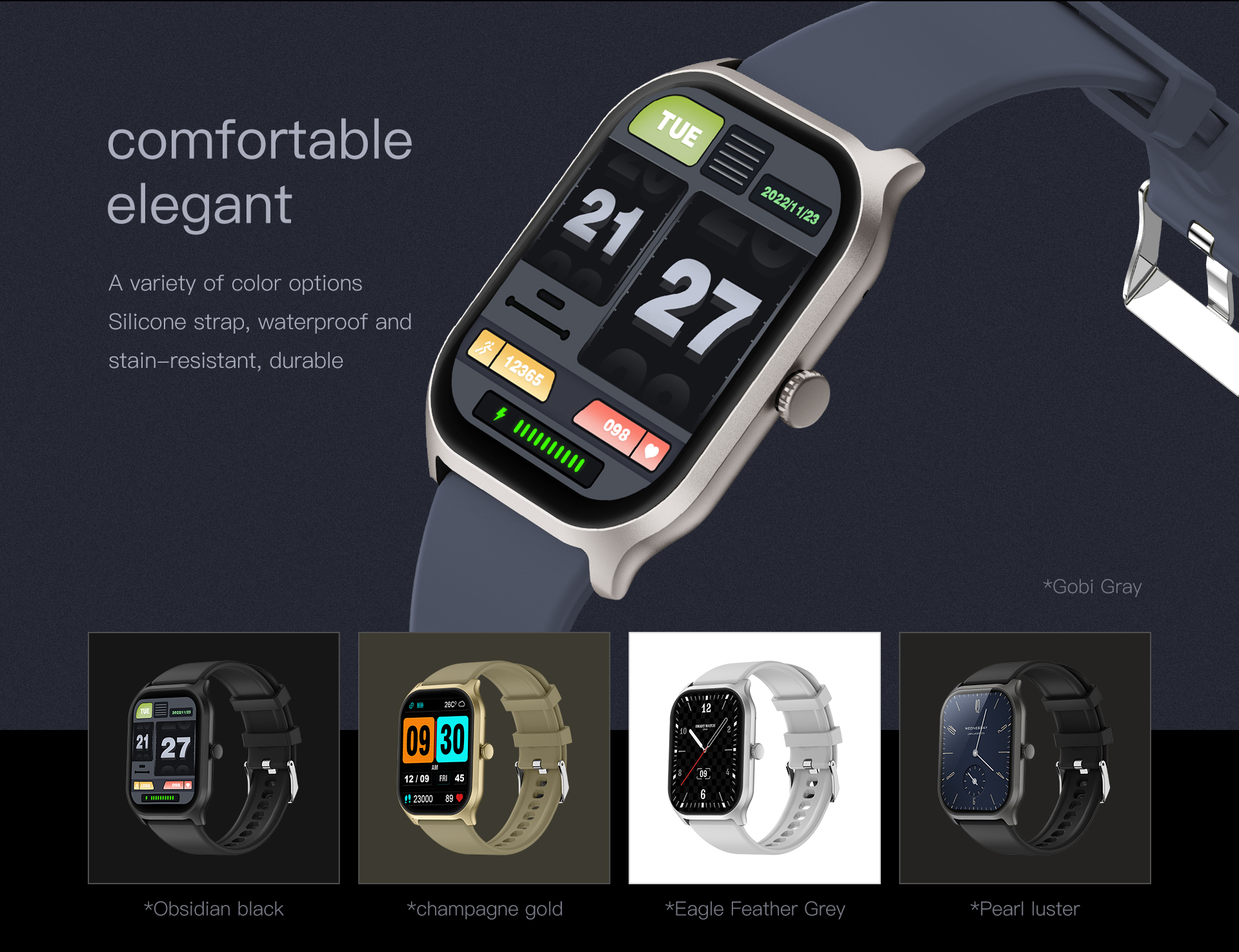 | Basic Functions | Bluetooth calling,Heart rate,Blood Pressure,Blood oxygen,AI Voice ,120+Sport modes,ETC. |