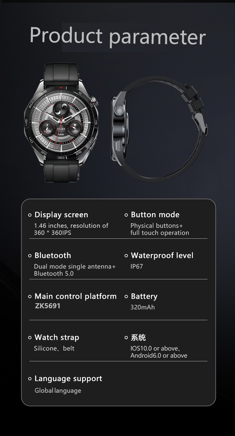Innovative Functions & Design:Boasts unique features such as photo live transmission, Smart Island, watch bullet screen, and pinch-to-answer calls. Crafted from zinc alloy with vacuum-plated stainless steel glossy finish,and IP67 water resistance, ideal for business use.