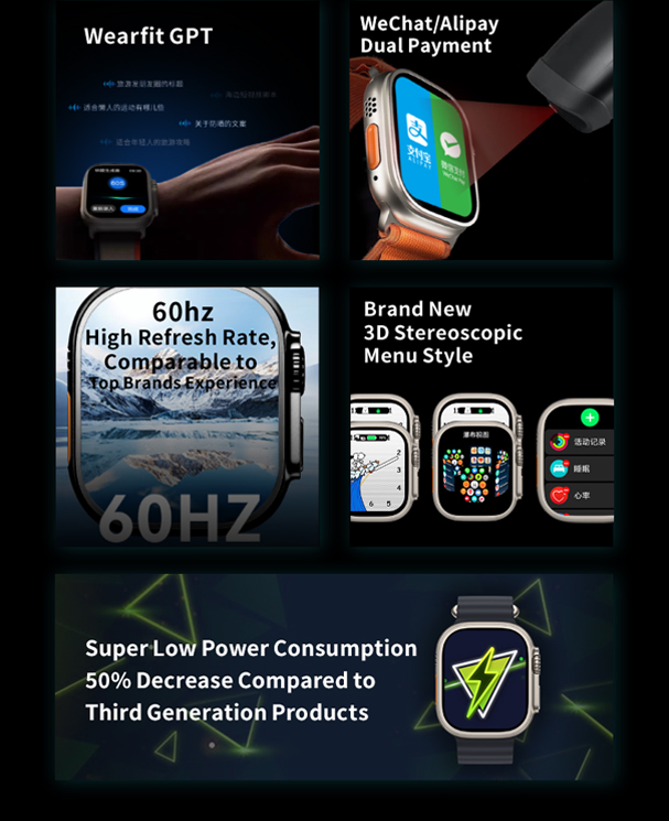 Comprehensive Health Monitoring:Features dynamic accurate heart rate monitoring, blood glucose tracking, and a range of health monitoring functions, paired with the Wearfit pro app and Wearfit OS, providing real-time health data and insights.