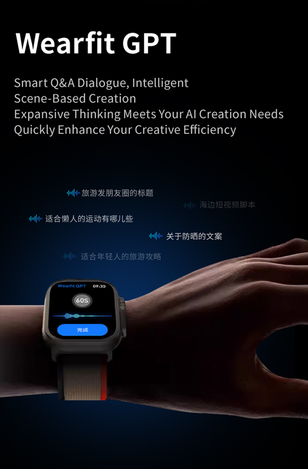 Comprehensive Health Monitoring:Features dynamic accurate heart rate monitoring, blood glucose tracking, and a range of health monitoring functions, paired with the Wearfit pro app and Wearfit OS, providing real-time health data and insights.