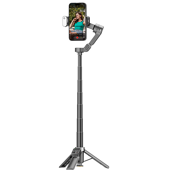 The Smart X3 is the first 3-axis smartphone gimbal to feature a press-to-open tripod design and a magnetic Bluetooth remote control, making it simple to operate yet powerful in functionality. Equipped with an AI tracking and fill light module, it delivers exceptional intelligent tracking and lighting performance. With six shooting modes and a built-in 51 cm extension rod, the Smart X3 empowers you to capture freely and creatively.