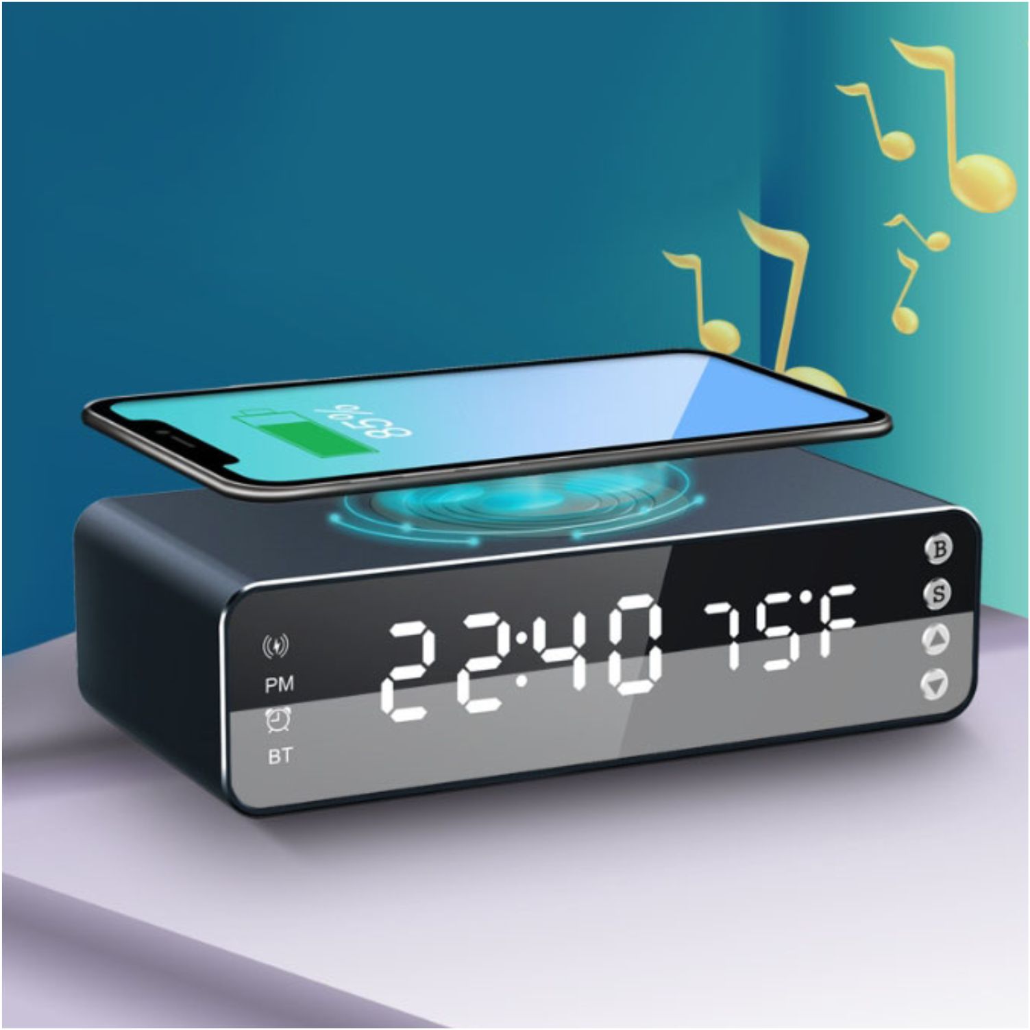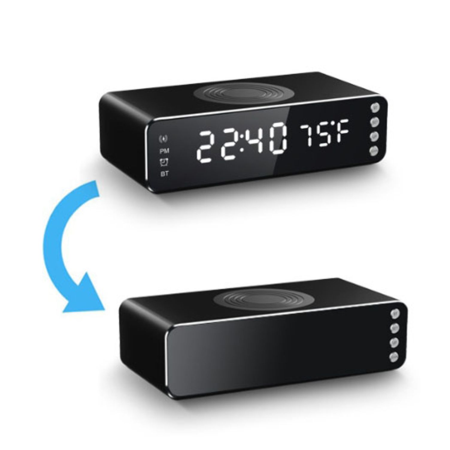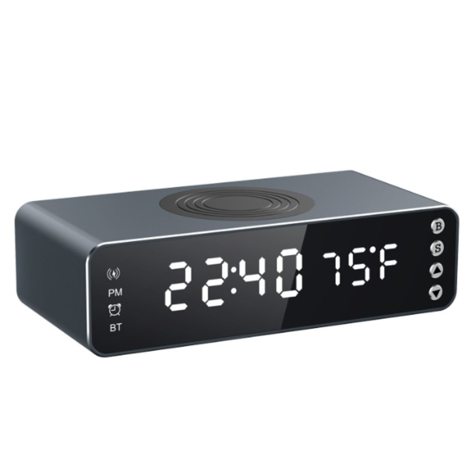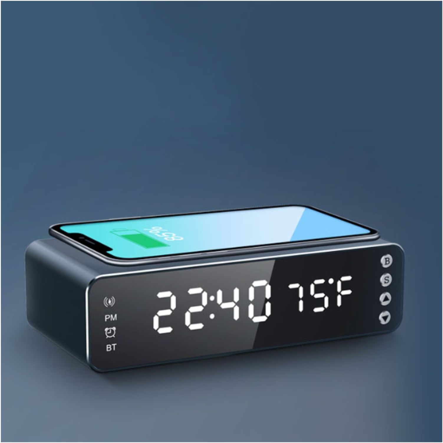 Wireless Charger Alarm Clock: Supports max 15W fast charging. Qi-Certified Smart Phones. Place your phone on the top, it will be fully charged phone when you wake up in the morning (sound reminder when charging).