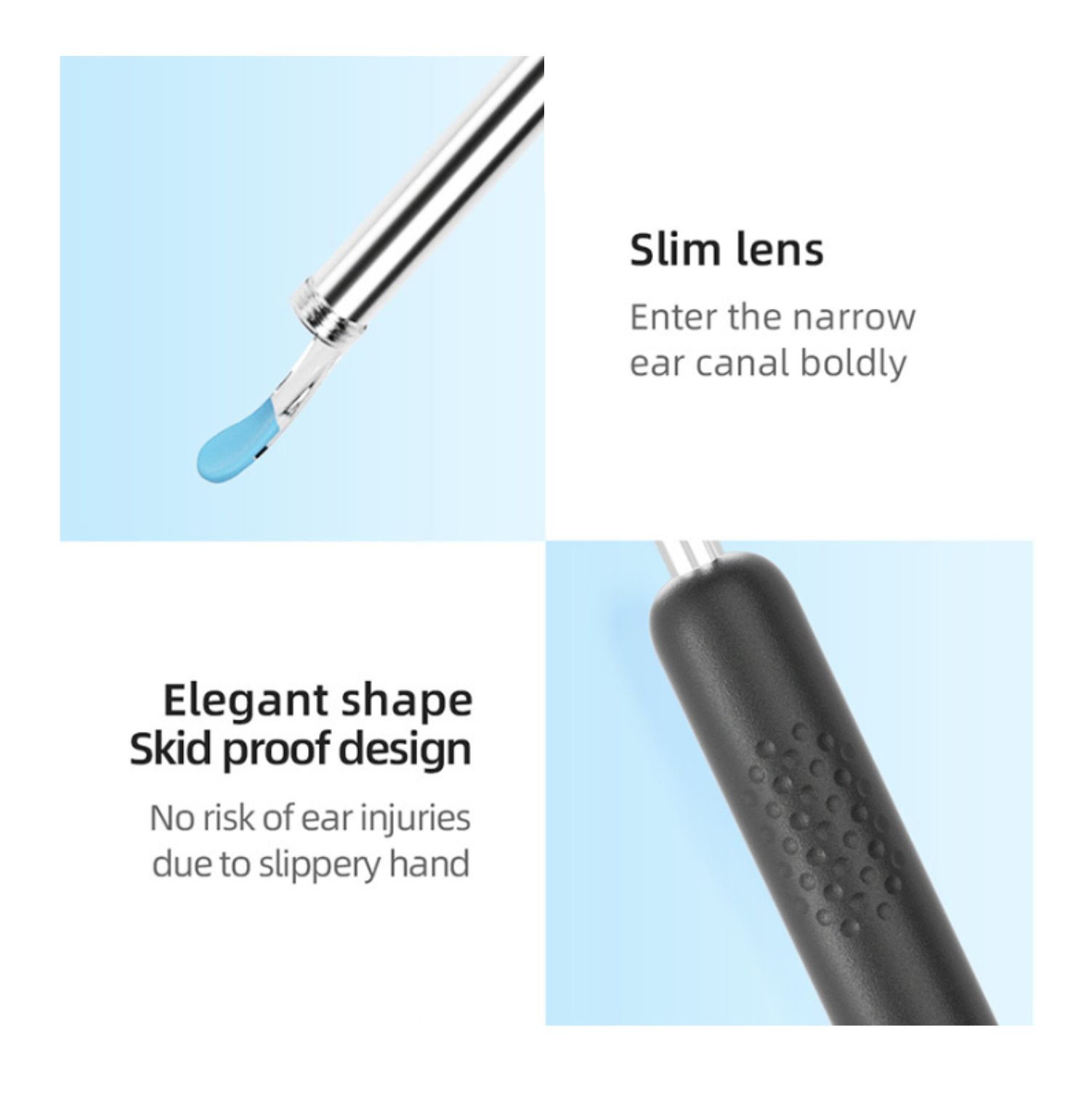 360° Wide Angle & 1080P HD Ear Camera:This ear wax removal tool camera has 300W pixel high precision lens with 360° wide angle view, 6 LED lights and 1080P high resolution, enable you to see every corner of the ear canal clearly and ear cleaner.
