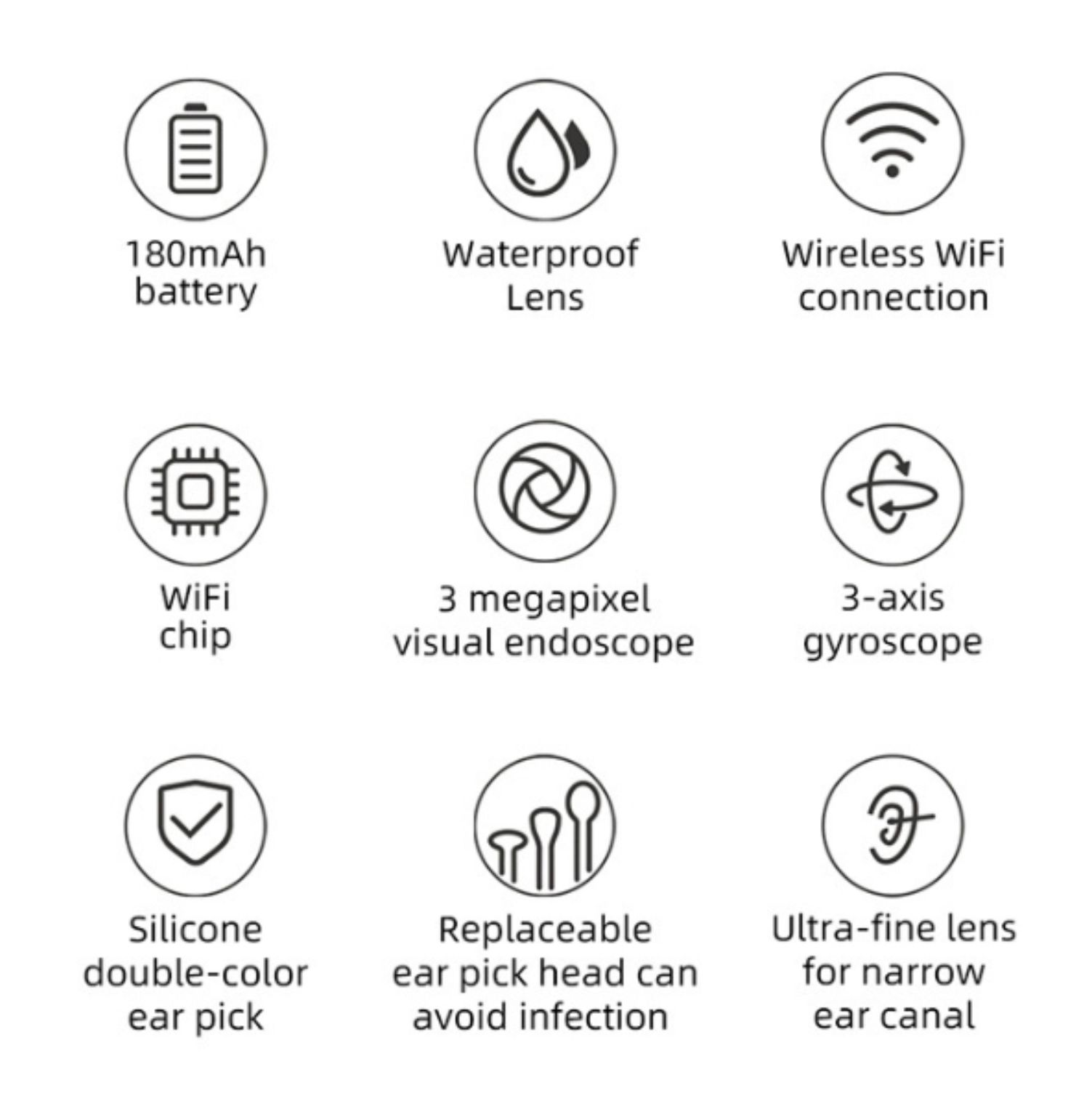 Intelligent Visible APP: WIFI direct connection between ear camera and APP, only three steps to earwax cleaning. Video ear wax removal tool support taking pictures and recording video, 20fps transfer rate to make video without lag.The ear cleaner camera is compatible with iOS iPadOS and Android systems.