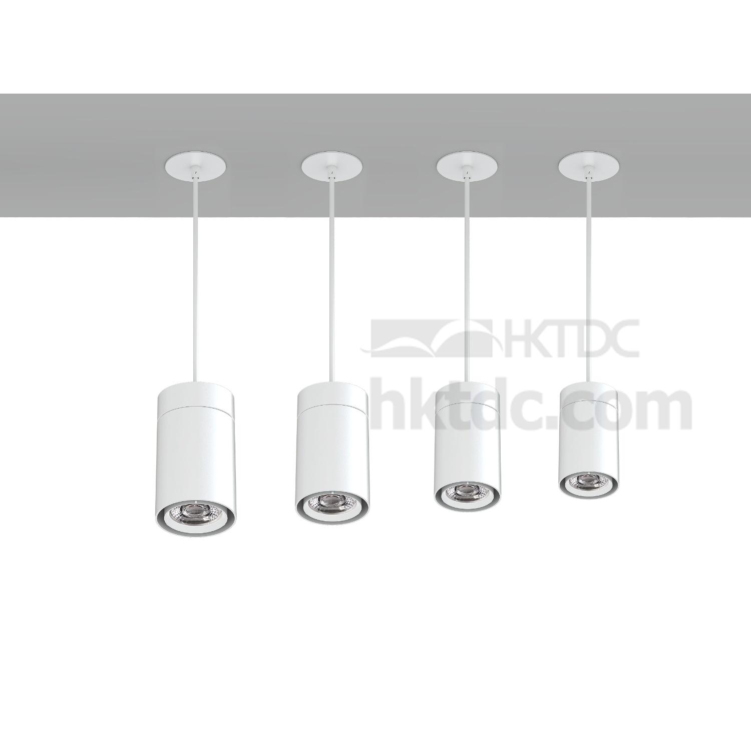 The Smarter™ contemporary cylinder Pendant Lights adopt CREE®, Luminus® or Bridgelux® COB LED arrays, delivering 610 to 2600 lumens light output, with up to 120 lumen per watt. Available in black and white finishes, the fixture offers various power options including 8,10, 15 and 22 watts. In addition, it's supplied with interchangeable beam spreads of 15°,24°,38°,60°. The five-feet field-cuttable suspension cable makes it the perfect choice for installations of different heights.