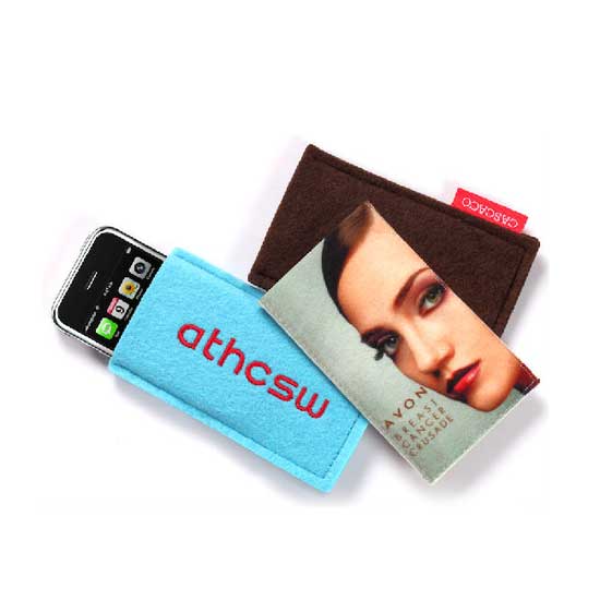 This is a smartphone holder that comes in assorted designs. Made of felt, this sleeve feels comfortable and soft. This smartphone holder is also ideal for holding tablets and cameras.