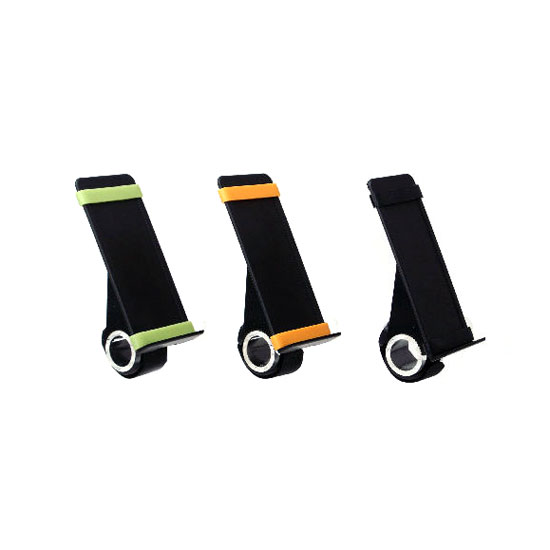 This is a smartphone holder suitable for mounting on bicycles and strollers. It features an ABS body and a silicone base and a silicone band. Different colors are available for you to choose from.
