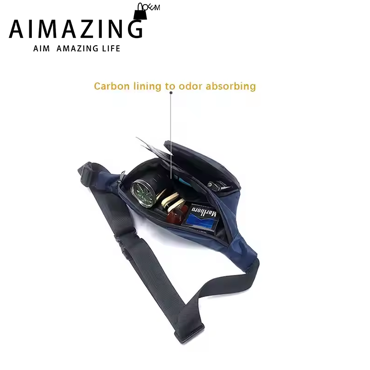 1. OEM Waist Bag With Elastic Strap Discrete Stash Pocket Custom Smell Proof Fanny Pack With Activated Carbon